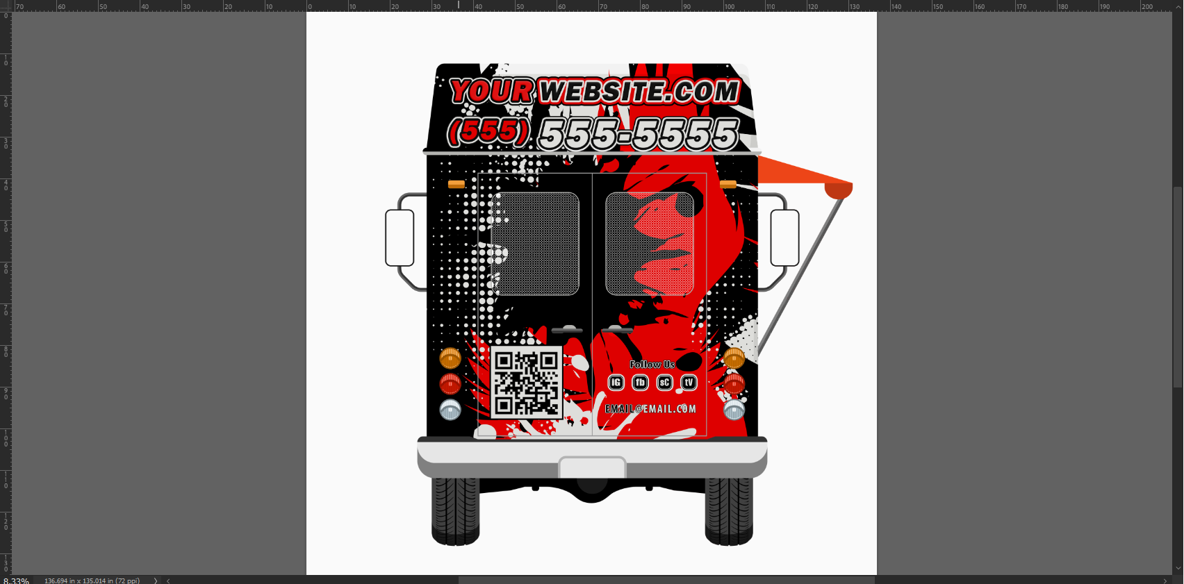 Designed with a bold grunge aesthetic, this template is perfect for food trucks looking to project a strong, edgy, and unforgettable brand presence. It’s ideal for designers, wrap shops, or entrepreneurs who need a fast, reliable, and professional starting point.